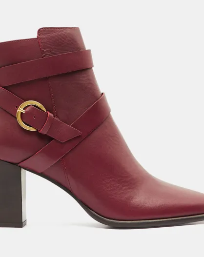 Bottines en Cuir détail brides rouge bordeaux - Talon 8 cm
