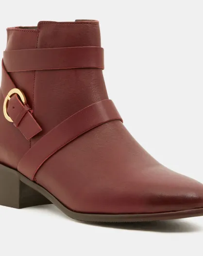Bottines en Cuir plates détail brides rouge bordeaux - Talon 3 cm