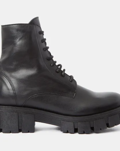 Boots en Cuir à lacets semelle épaisse noires - Talon 4,5 cm