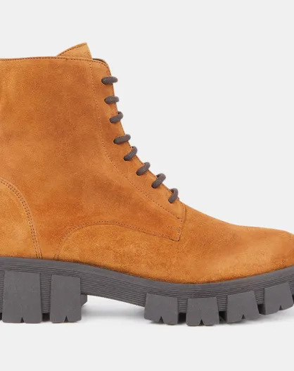Boots en Cuir à lacets semelle épaisse camel - Talon 4,5 cm
