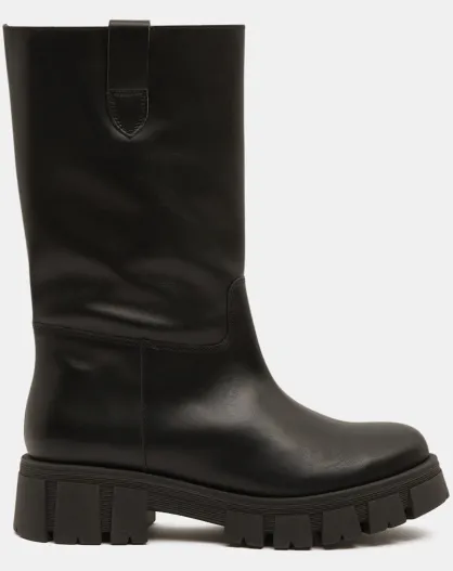 Bottes en Cuir semelle épaisse noires - Talon 4 cm