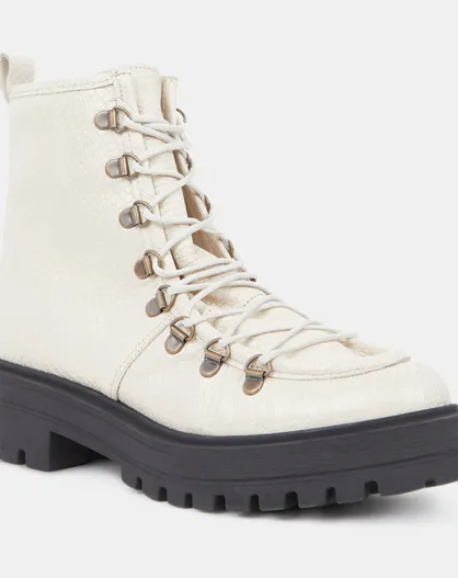 Boots de montagne à lacets Python beiges - Talon 4,5 cm