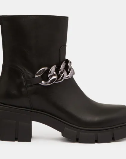 Boots en Cuir avec chaîne noires - Talon 6 cm