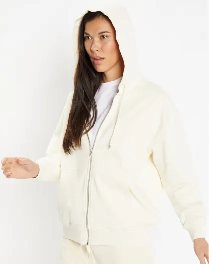 Sweat zippé en Coton bio Mathalie à capuche écru