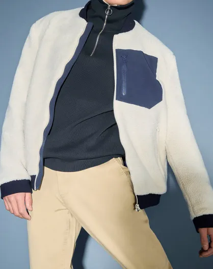 Bombers façon teddy en Sherpa Narpa écru/bleu