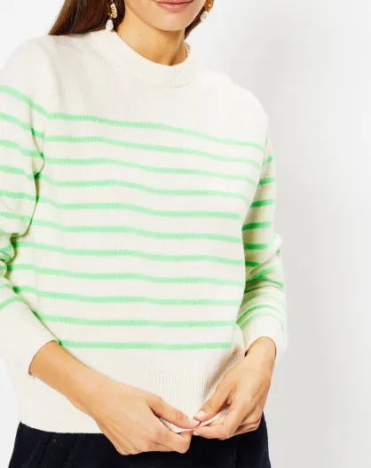 Pull en Laine & Cachemire Sadi marinière col rond écru/vert