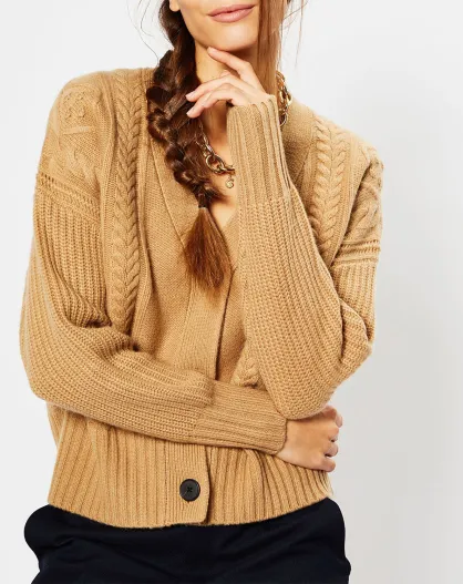 Cardigan en Laine & Cachemire Fabiola T col V beige