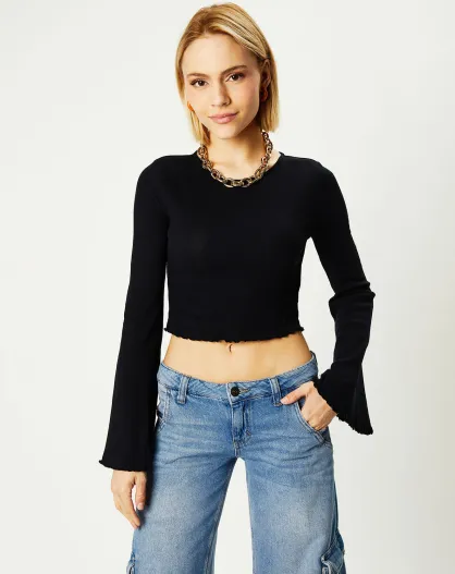 T-Shirt cropped côtelé Flute noir