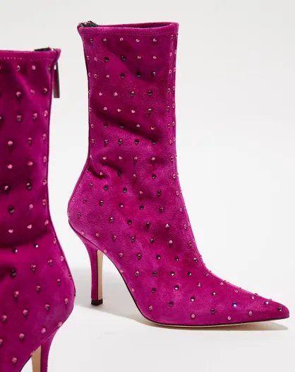 Bottines en Velours de Cuir & Strass Ankle roses - Talon 9.5 cm