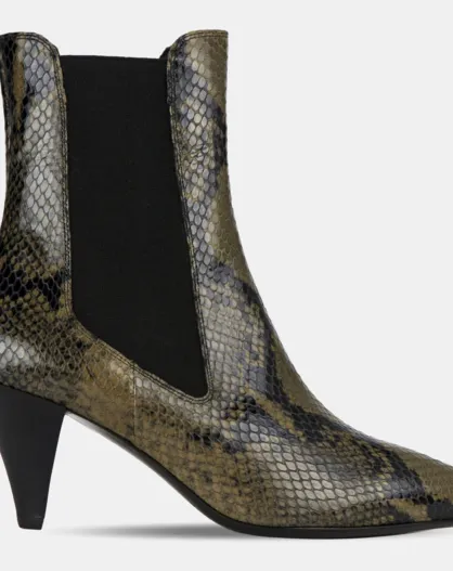 Chelsea Boots en Cuir façon Python kaki - Talon 7 cm