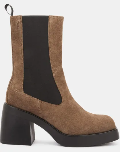 Chelsea Boots en Velours de Cuir beige foncé - Talon 9 cm