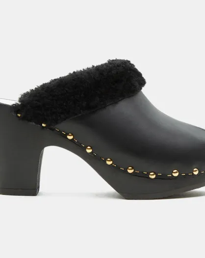 Sabots en Cuir fourrés noirs - Talon 9.5 cm