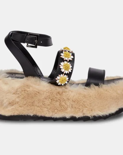 Sandales compensées en Cuir & Mouton Shia noires - Talon 6 cm