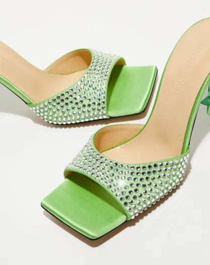 Sandales en Velours de Cuir Simple vert sapin - Talon 6,7 cm