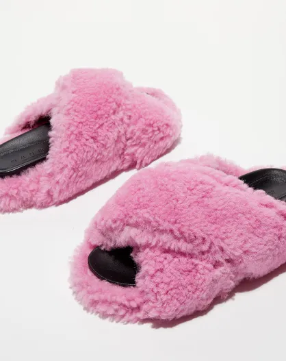 Mules fourrées en Mouton roses