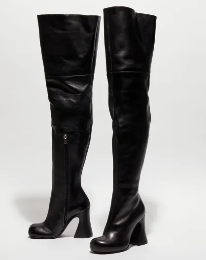 Cuissardes en Cuir Solene noires - Talon 10 cm