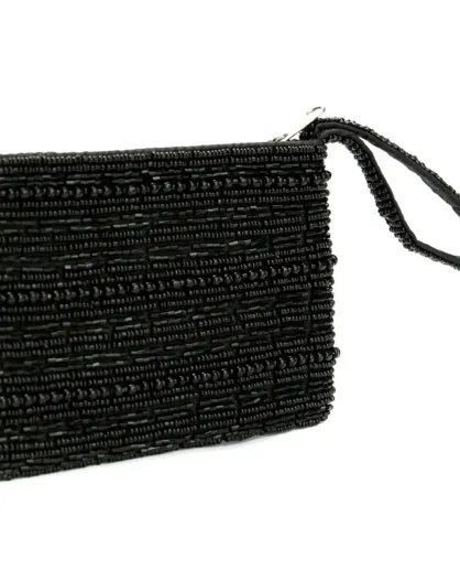 Porte-monnaie en perles noir - 14x10x2 cm