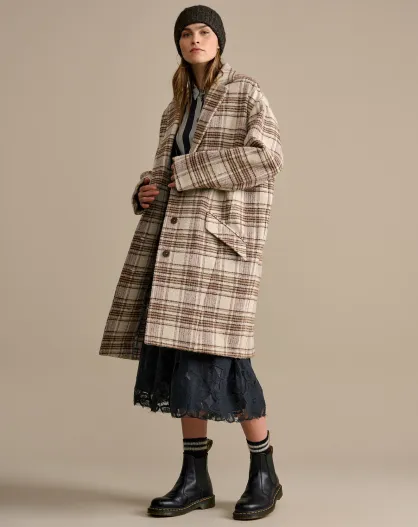 Manteau oversize en Laine mélangée Claire à carreaux beige