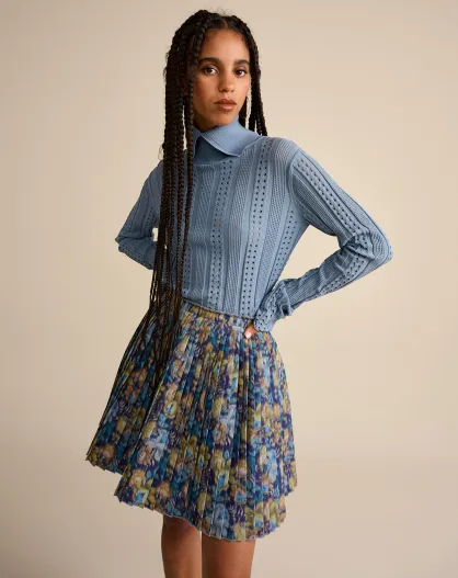 Jupe mini plissée Vilnius à fleurs bleu/multicolore