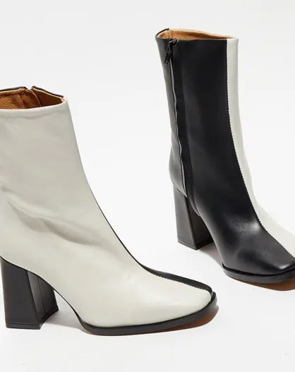 Bottines en Cuir Nicole bicolore noir/beige - Talon 8,5 cm