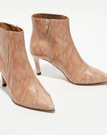 Bottines en Cuir python Suzanne rose/marron - Talon 7 cm