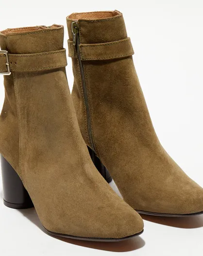 Bottines en Velours de Cuir Pia kaki - Talon 7,5 cm