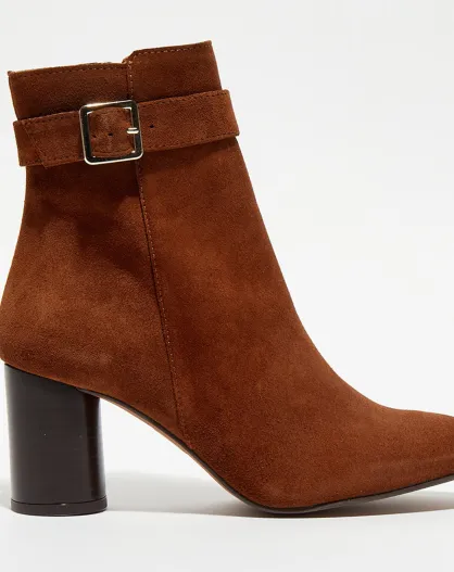 Bottines en Velours de Cuir Pia camel - Talon 7,5 cm