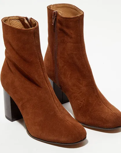 Bottines en Velours de Cuir Ginny camel - Talon 7,5 cm