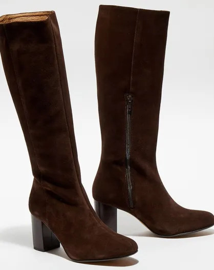 Bottes en Velours de Cuir Lara marron - Talon 8 cm