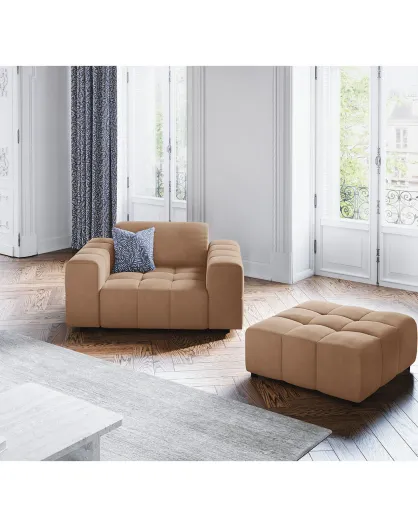 Pouf Velours Loge beige - 102x102x40 cm