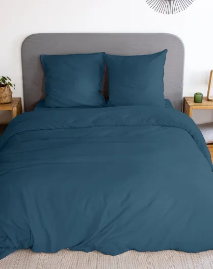 Parure housse de couette en microfibre lavée bleu nuit