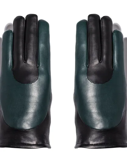 Gants en Cuir d'Agneau doublure Cachemire Halley noir/agave