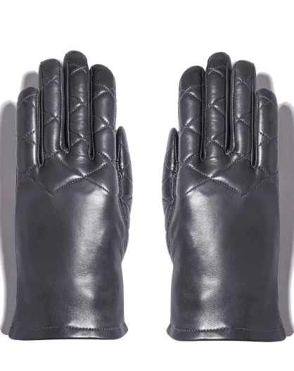 Gants en Cuir d'Agneau doublure Soie Happia gris moyen
