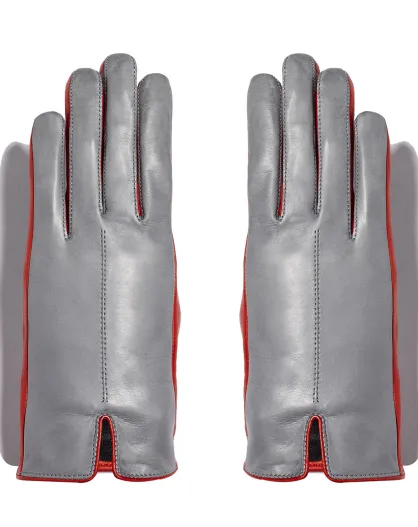 Gants en Cuir d'Agneau doublure Soie Hollow gris moyen