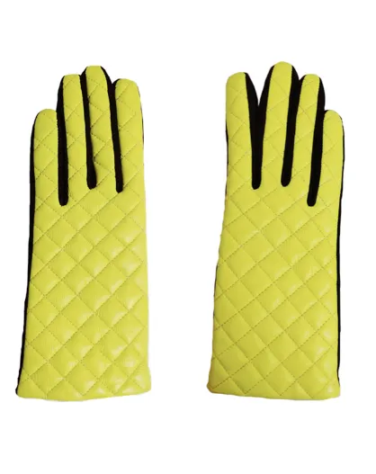 Gants en Cuir d'Agneau doublure Soie Rose N°1 jaune fluo
