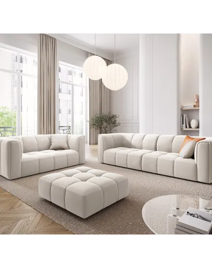 Canapé Modulaire Velours Adams 3 Places beige clair - 226x96x70 cm