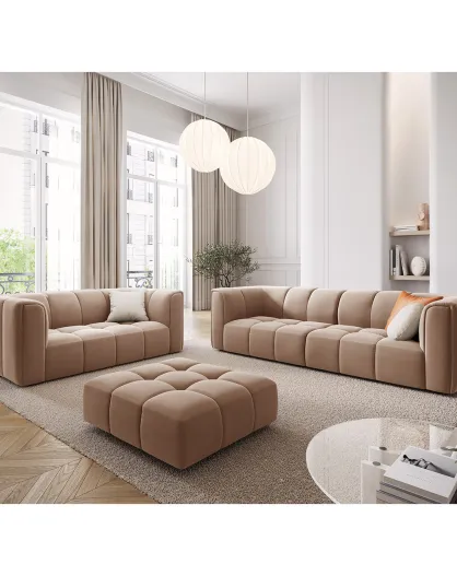 Canapé Modulaire Velours Adams 3 Places beige - 226x96x70 cm