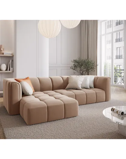 Canapé d'angle gauche Modulaire Velours Adams 3 Places beige - 256x160x70 cm