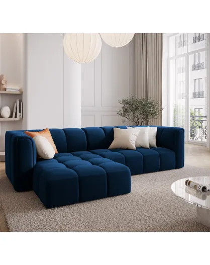 Canapé d'angle gauche Modulaire Velours Adams 3 Places bleu roi - 256x160x70 cm