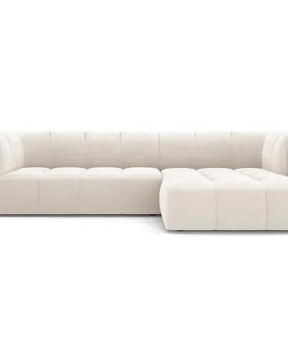 Canapé d'angle droit Modulaire Velours Adams 3 Places beige clair - 256x160x70 cm