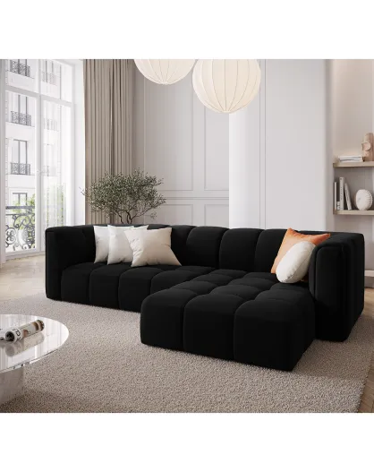 Canapé d'angle Droit Velours Clau 4 Places noir - 300x166x85 cm