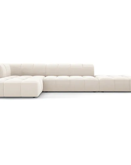 Canapé d'angle gauche Modulaire ouvert Velours Adams 5 Places beige clair - 323x160x70 cm