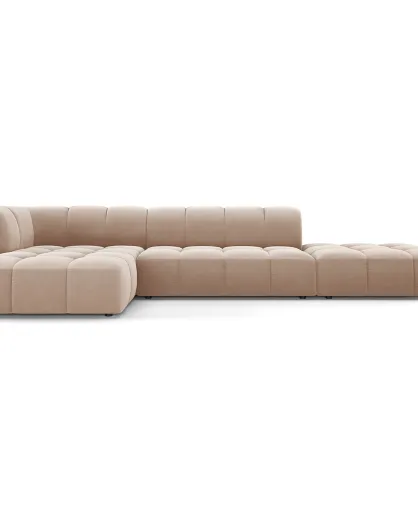 Canapé d'angle gauche Modulaire ouvert Velours Adams 5 Places beige - 323x160x70 cm