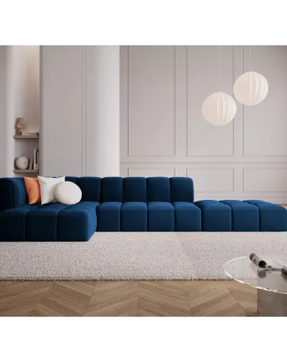 Canapé d'angle gauche Modulaire ouvert Velours Adams 5 Places bleu roi - 323x160x70 cm