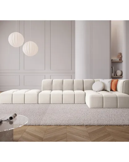 Canapé d'angle droit Modulaire ouvert Velours Adams 5 Places beige clair - 323x160x70 cm
