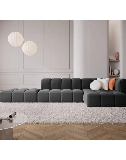 Canapé d'angle droit Modulaire ouvert Velours Adams 5 Places gris - 323x160x70 cm