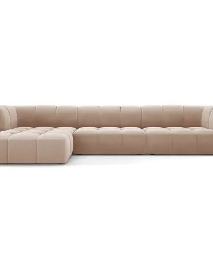 Canapé d'angle gauche Modulaire Velours Adams 5 Places beige - 316x160x70 cm