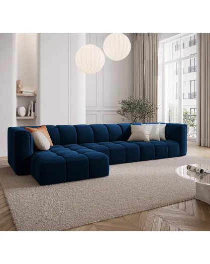 Canapé d'angle gauche Modulaire Velours Adams 5 Places bleu roi - 316x160x70 cm