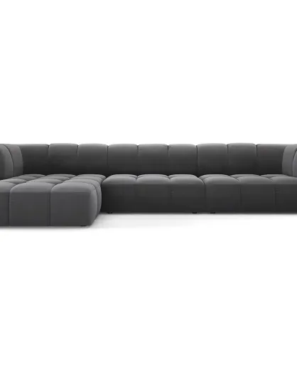 Canapé d'angle gauche Modulaire Velours Adams 5 Places gris - 316x160x70 cm