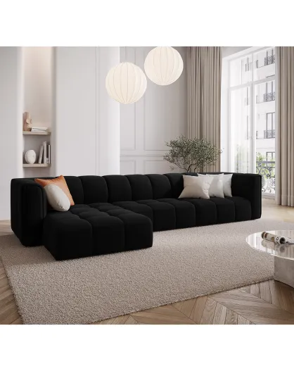 Canapé d'angle Droit Velours Clau 4 Places noir - 300x166x85 cm